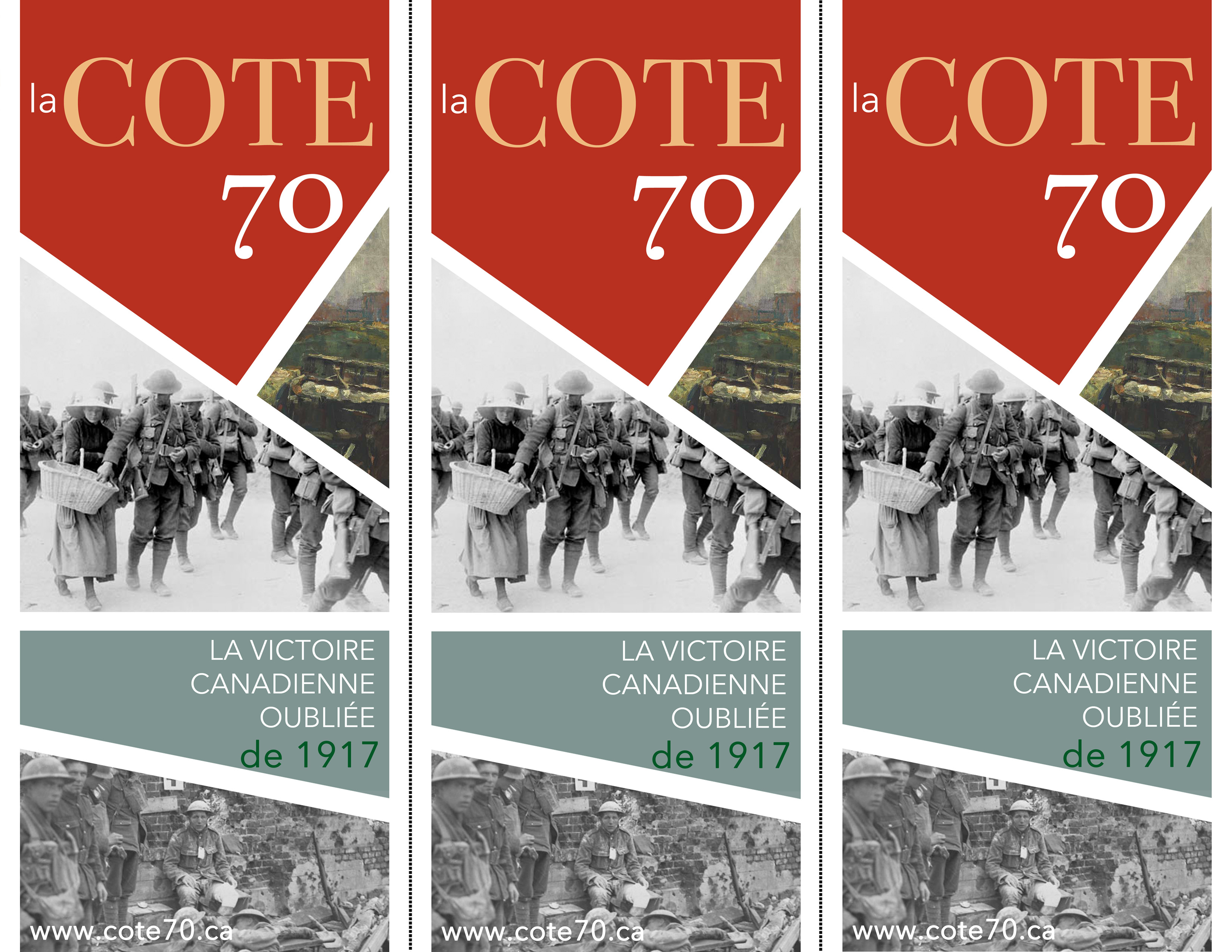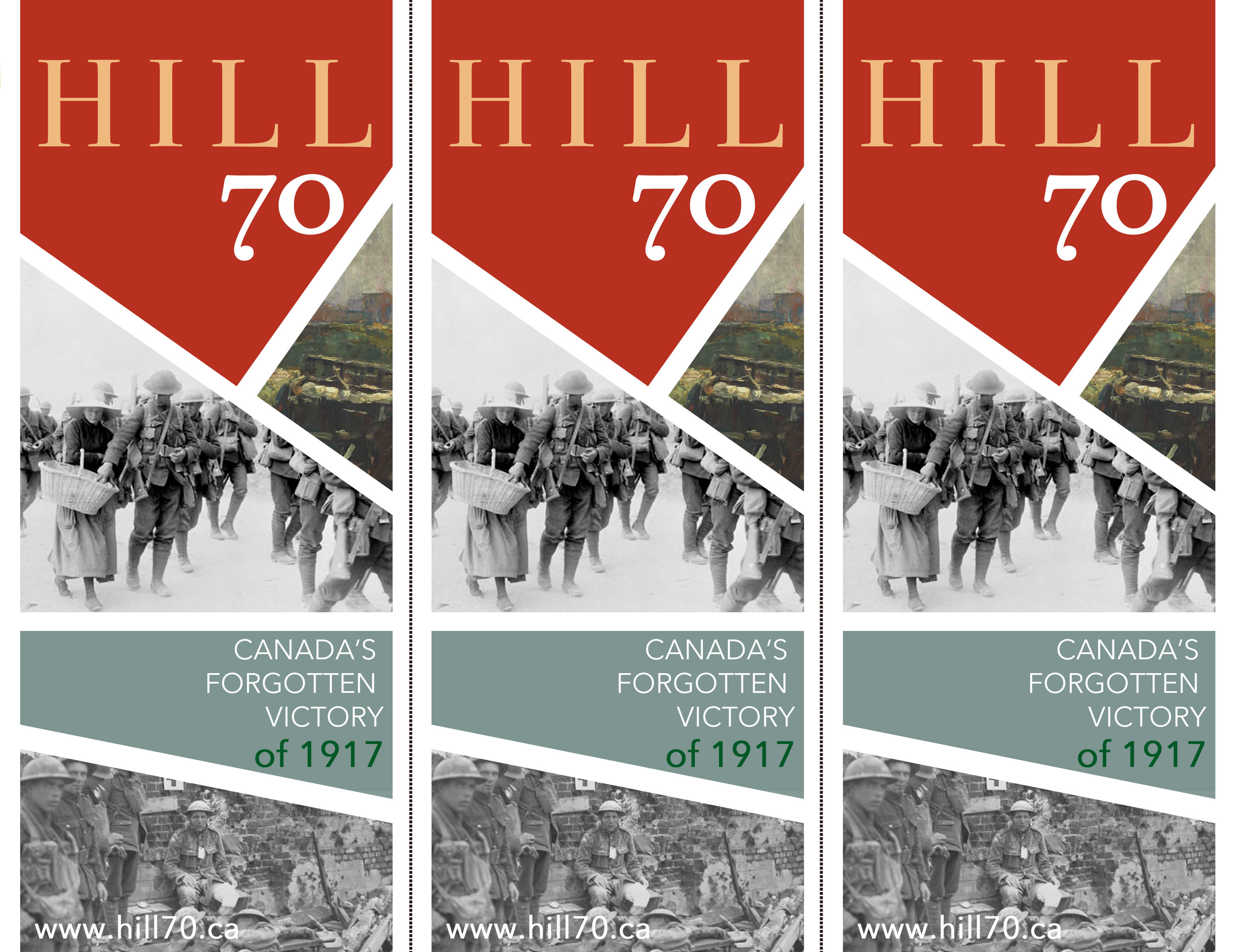 The photos and artwork are of scenes at Hill 70, used with permission from Library and Archives Canada.
